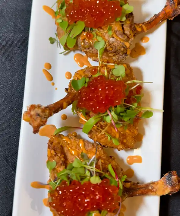 Garnished with vibrant microgreens and a touch of citrus, it’s a masterful balance of heat, heart, and refinement.
